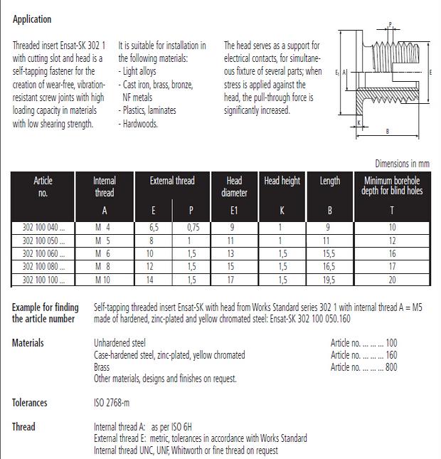 24h咨詢熱線13069364703在線咨詢????302-1型自攻螺套是一種新型的緊固件,使用后能夠加強螺紋強度。產品有內外牙,將其嵌入塑料,鋁合金,鑄鐵,銅等較軟材料內,形成的內螺紋孔就可以具有較高的強度。