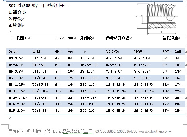 產品簡介:308型自攻絲套使用影響機器行業當中的作用:螺紋護套被認為一種緊固件產品,大概在幾年前,當有人提到308型自攻絲套的時候會不清楚,然而,隨著時間的推移,螺紋護套產品的選擇不斷增加,襯套的重要性,在行業當中的使用也隨之的被各位熟悉。