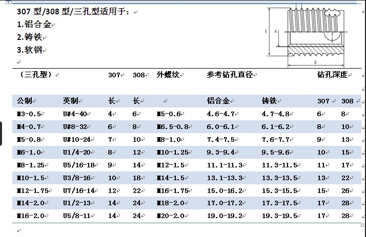 3、?是增加低強(qiáng)度材料螺紋部機(jī)械強(qiáng)度,無需螺紋加工的連結(jié)零件